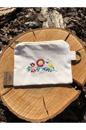 Folklorní kapsička má zapínání na zip.